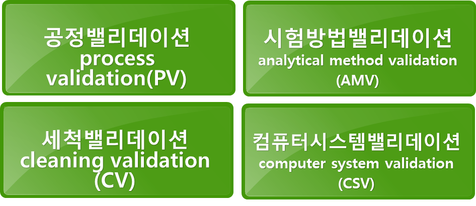 어느 특정 공정이 미리 설정된 기준과 품질특성에 적합한 제품을 일관되게 제조한다는 것을 확실하게 보증하는 증거를 문서로 확립하는 것(FDA)