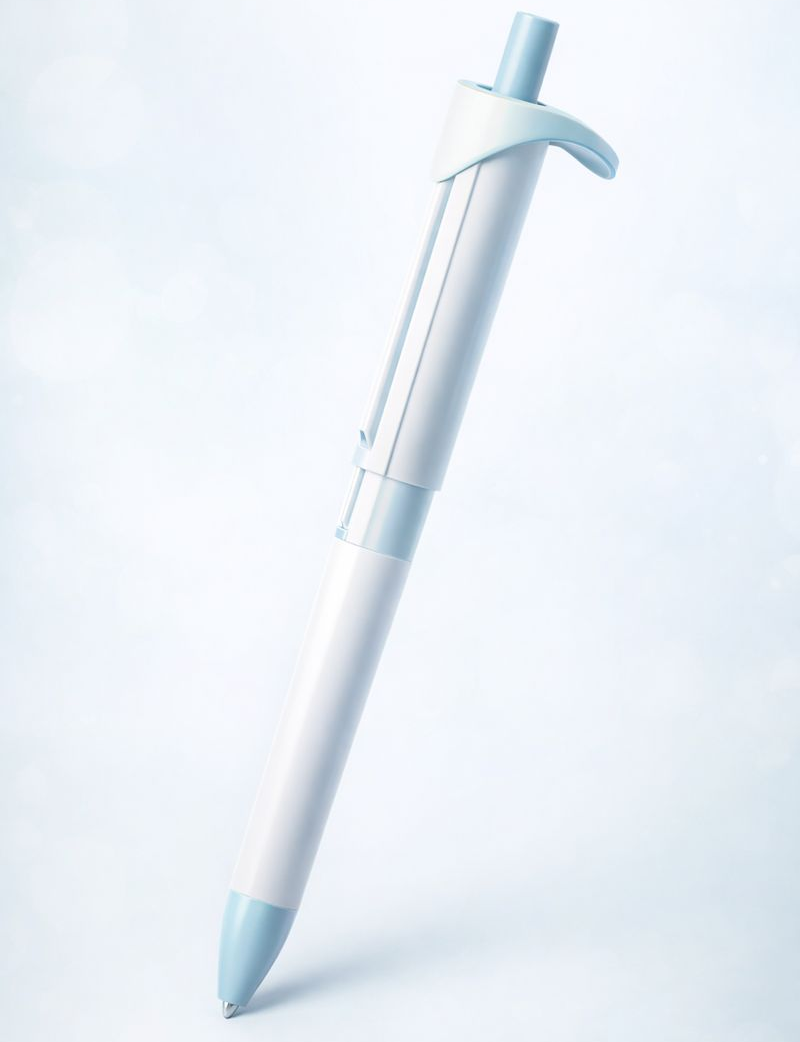 마이크로피펫 볼펜은 실험실에서 가장 익숙한 도구 중 하나인 마이크로피펫의 이미지를 일상적인 필기구에 자연스럽게 이식하는 것을 목표로 시작됐다. 단순히 실험기구를 닮은 볼펜을 만드는 것이 아니라, 정밀함과 신뢰성이라는 실험 도구의 인상을 사용자 경험 전반에 녹여내는 것이 핵심이었다. 볼펜 본체는 노크식 볼펜이라는 익숙한 구조를 유지하면서도, 상단 푸셔 형태와 바디 비례를 통해 마이크로피펫을 연상시키는 실루엣을 갖고 있다. 이는 처음 보는 사람도 거부감 없이 사용할 수 있으면서, 동시에 이 제품만의 정체성을 인식할 수 있도록 설계된 결과다.