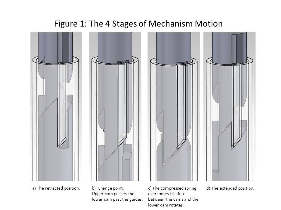 노크 버튼(노브)을 누르면 스프링의 반동과 내부 캠 또는 기어 장치가 펜촉(팁)과 연결된 잉크 심을 밀어내어 펜 끝으로 돌출시키고, 다시 누르면 역순으로 펜촉이 들어가거나 고정되는 구조이다.